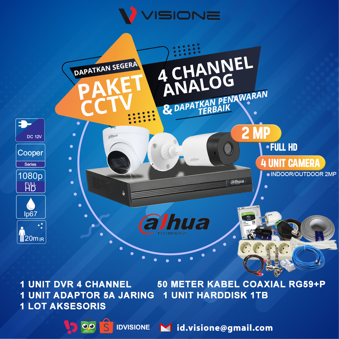4 Unit Kamera Analog 2Megapixel ( Bebas Pilih Kamera Indoor / Outdoor )