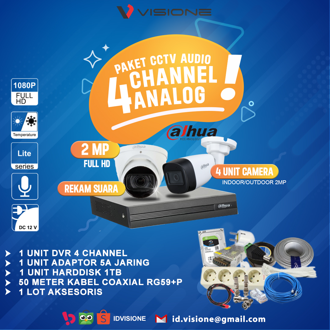 4 Unit Kamera Analog Audio 2Megapixel ( Bebas Pilih Kamera Indoor / Outdoor )